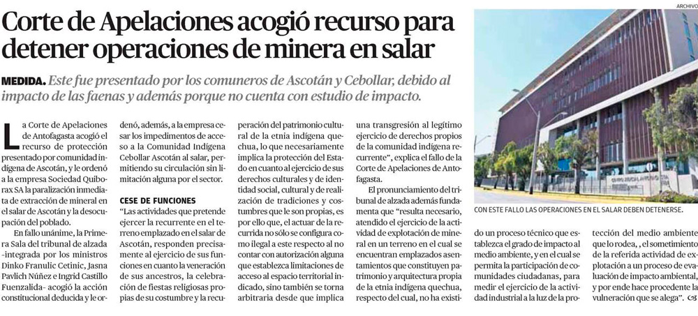 Corte de Antofagasta acoge recurso de comunidad quechua y ordena a empresa minera paralizar explotación en salar de Ascotán - (elregionalista)