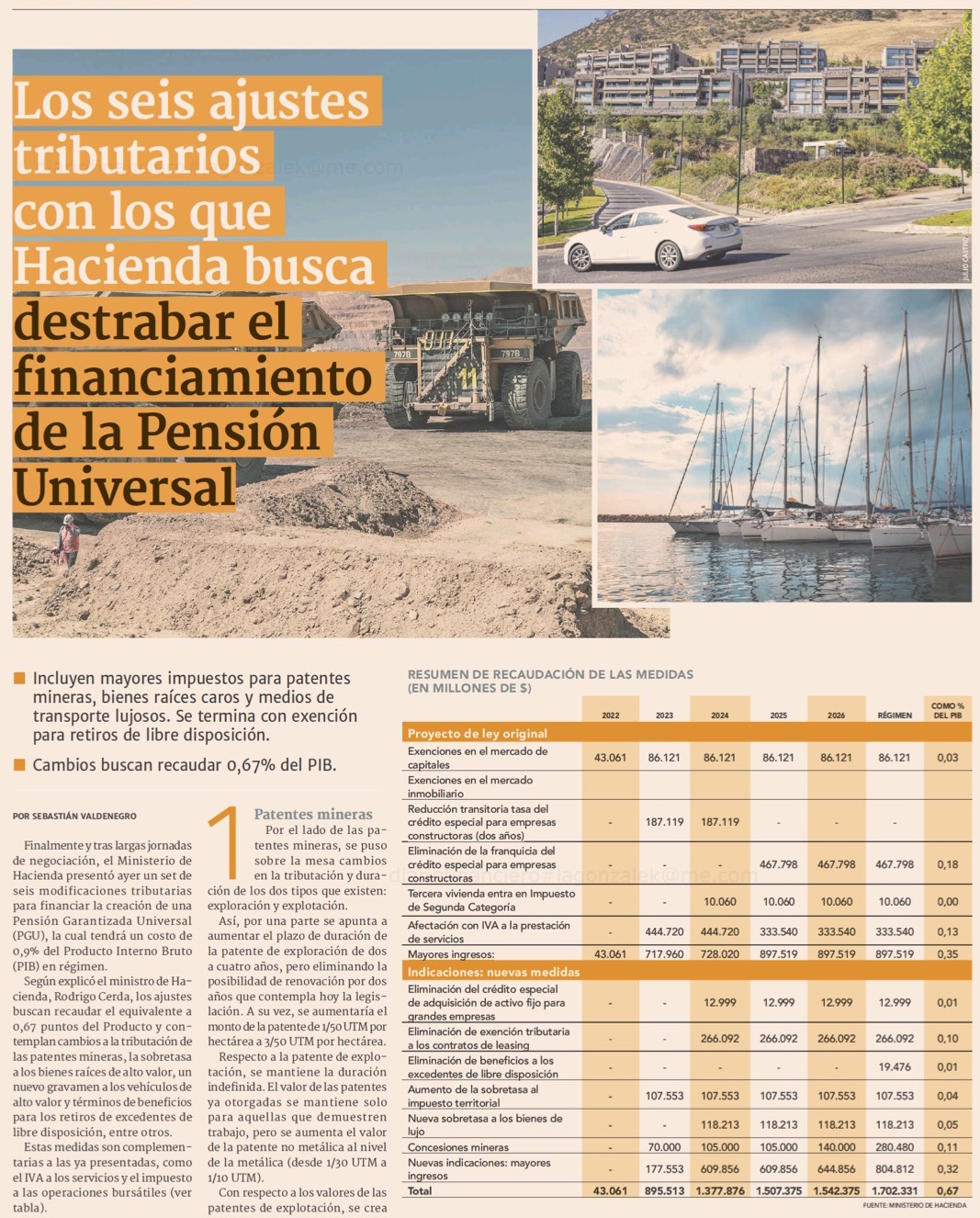 El detalle de las nuevas medidas para financiar la Pensión Garantizada Universal - (El Mercurio de Santiago)
