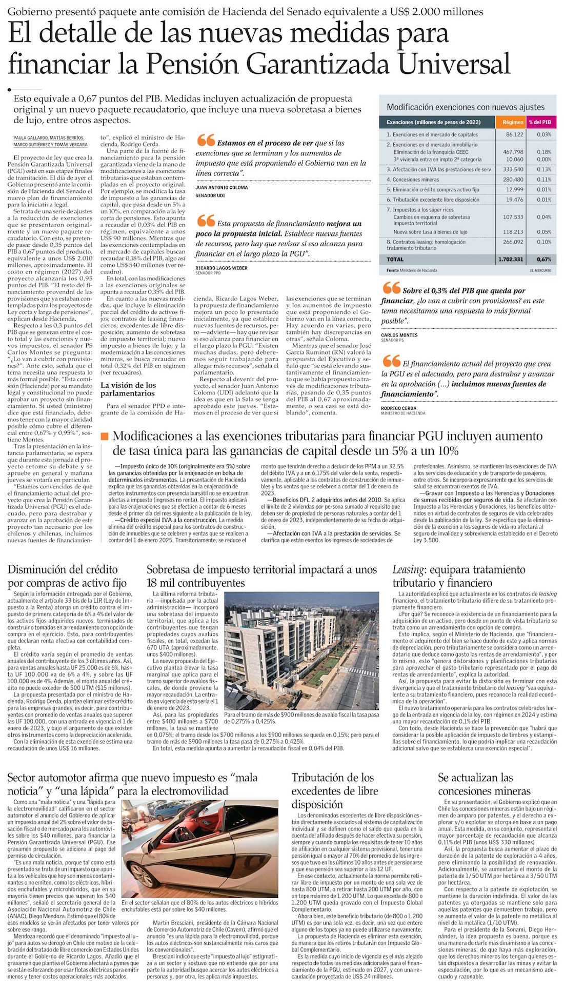 Los seis ajustes tributarios con los que el gobierno busca destrabar el financiamiento de la Pensión Universal - (Diario Financiero)
