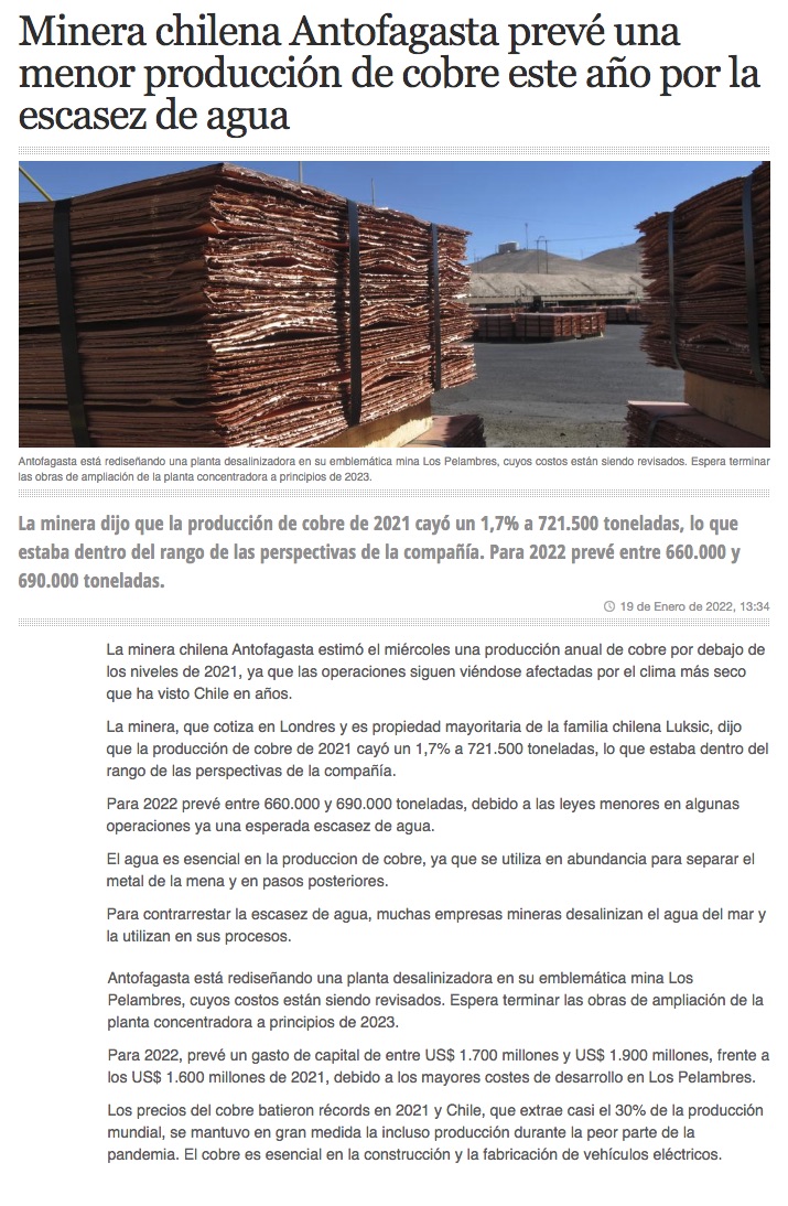 Minera de los Luksic prevé alza de costos por impacto de la sequía - (El Mercurio de Santiago)