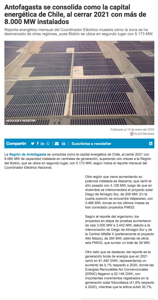 Energía, mayor inversión regional en proyectos sustentables - (Estrella de Antofagasta)