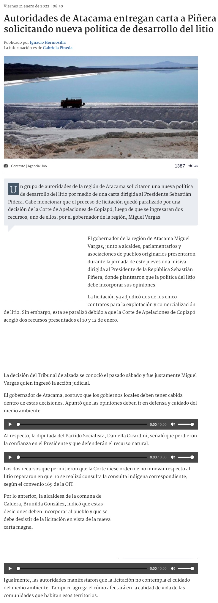 Regiones del norte se movilizaron por la defensa del litio - (El Mercurio de Calama)