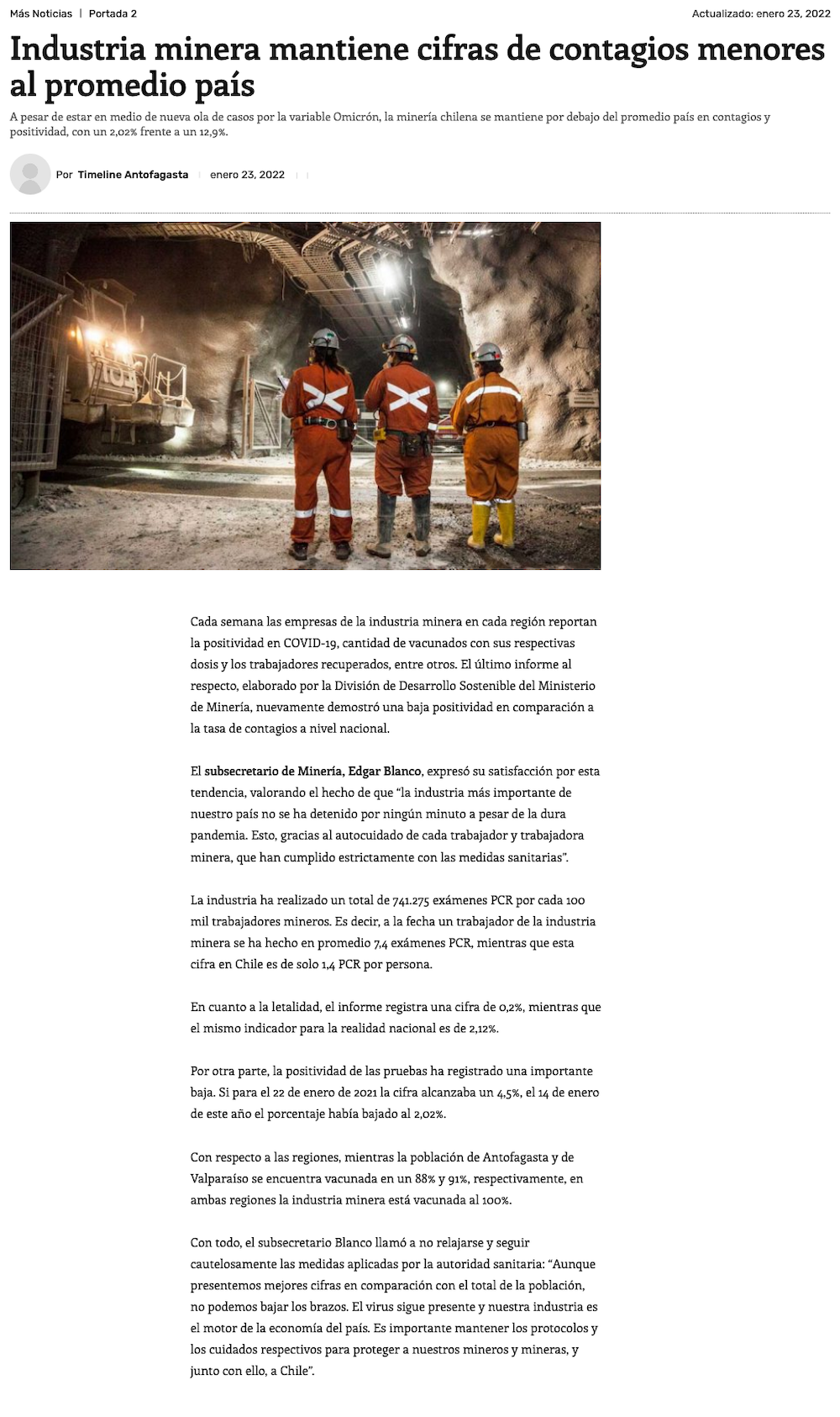 La minería local mantiene cifras de contagios menores al resto del país - (El Longino de Iquique)