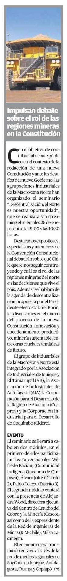 Actores de la Macrozona Norte impulsan debate sobre el rol de las regiones mineras en la Nueva Constitución - (El Longino de Iquique)