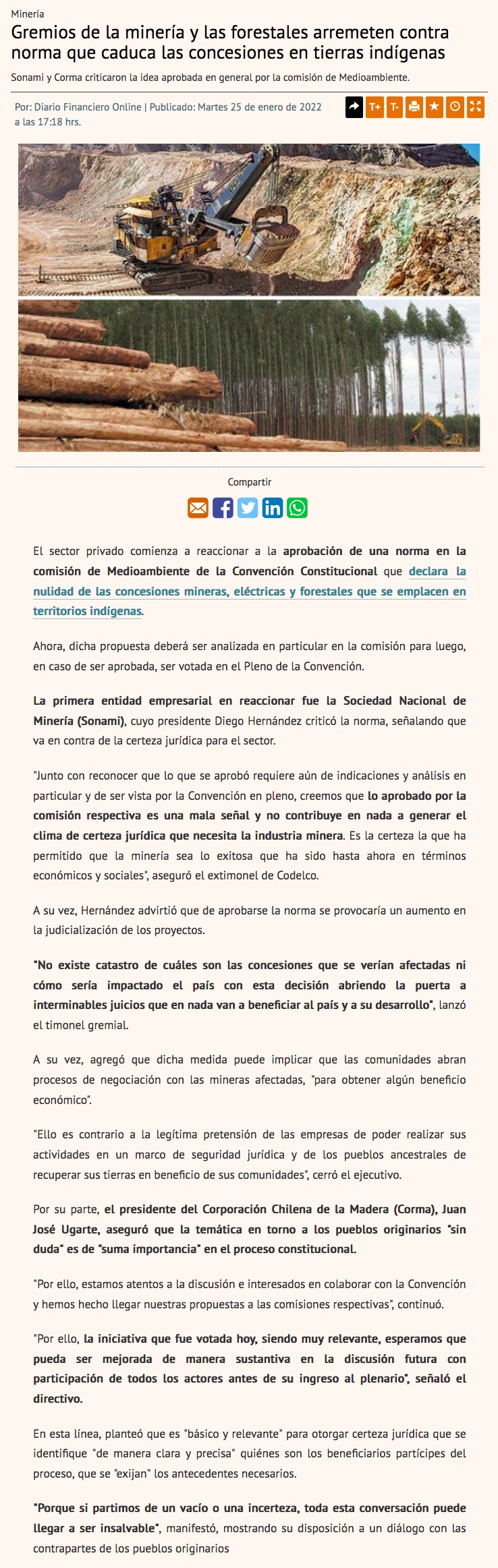 Gremios critican duramente nulidad de concesiones a diversas industrias en "territorios indígenas", que avanza en la Convención Constitucional - (Pulso)