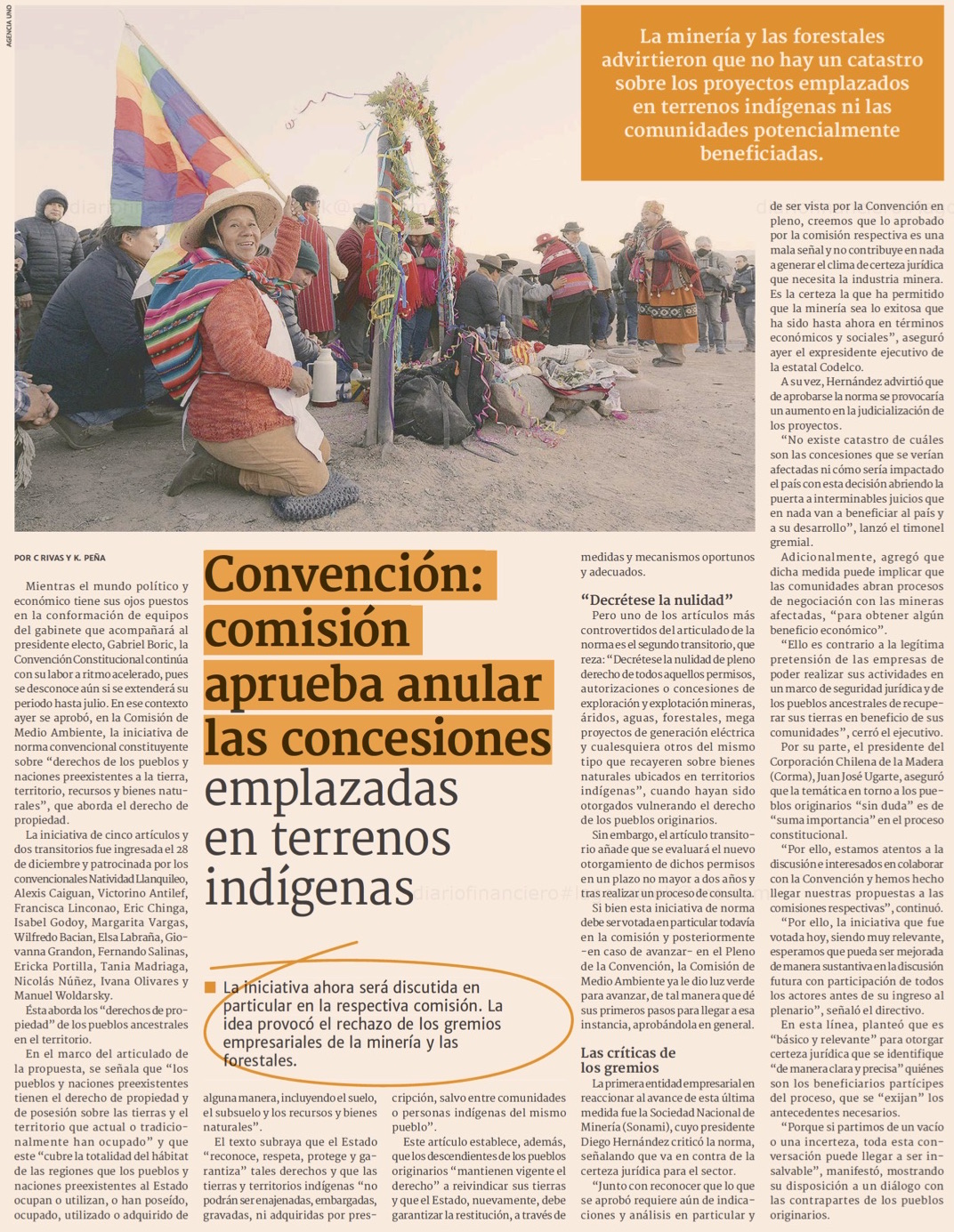 Gremios critican duramente nulidad de concesiones a diversas industrias en "territorios indígenas", que avanza en la Convención Constitucional - (Pulso)