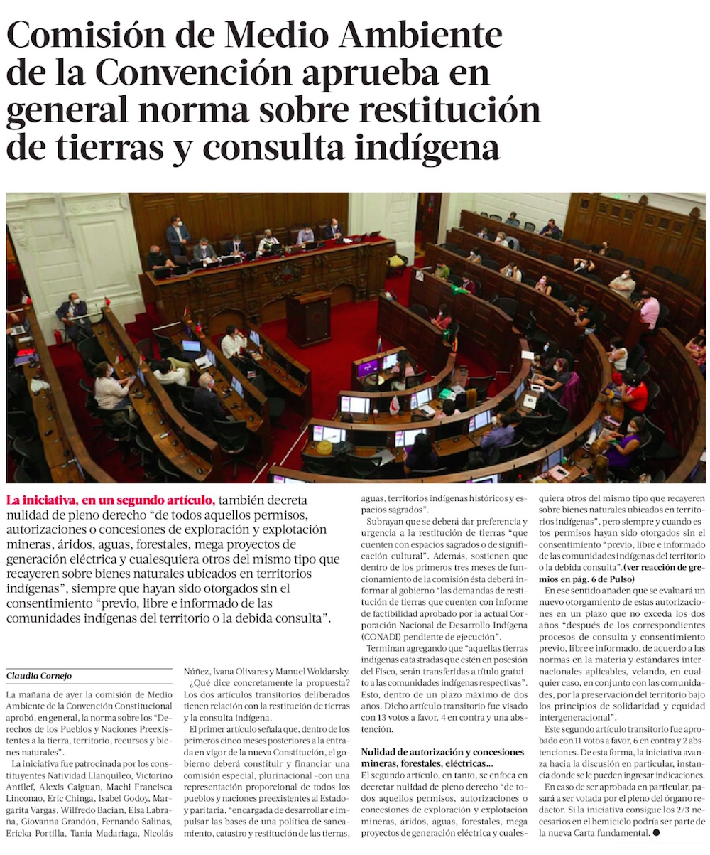 Convención: comisión aprueba anular las concesiones emplazadas en terrenos indígenas - (Diario Financiero)