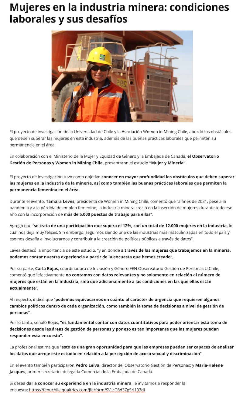 Mujeres en la industria minera: condiciones laborales y sus desafíos - (mch.cl)