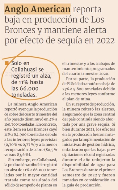 Anglo condiciona nivel de producción a disponibilidad hídrica - (El Mercurio de Santiago)