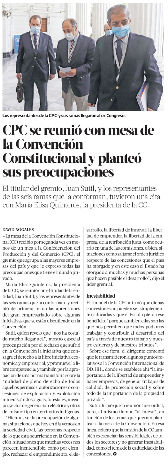 Diez iniciativas populares de norma para la Convención apoyadas por gremios empresariales logran las 15 mil firmas - (El Mercurio de Santiago)