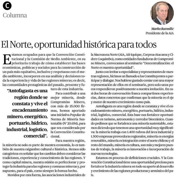 El Norte, oportunidad histórica para todos - (El Mercurio de Antofagasta)