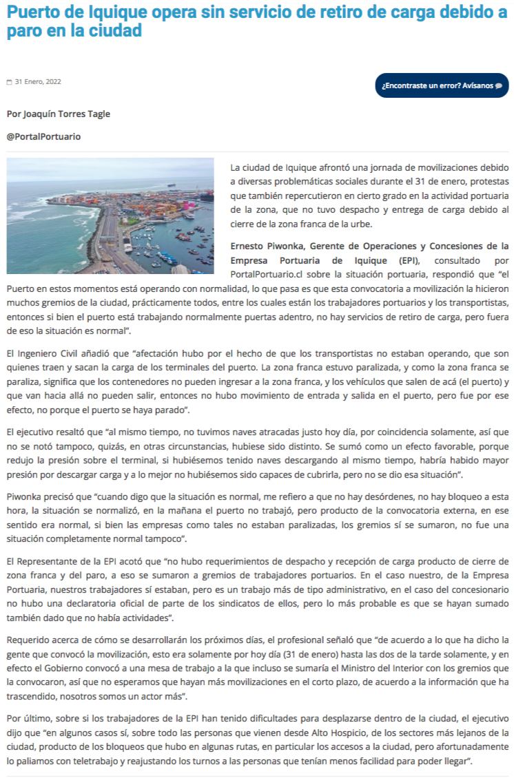 Paro en Tarapacá: una innegable alerta - (Diario Financiero)