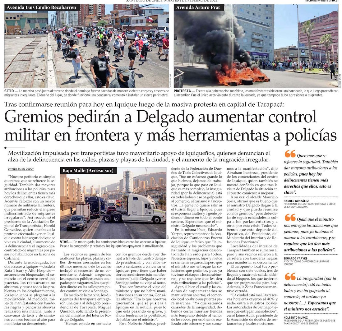 Gobierno aterriza hoy en Iquique para afrontar la crisis migratoria que paralizó a la ciudad este lunes - (Diario Financiero)
