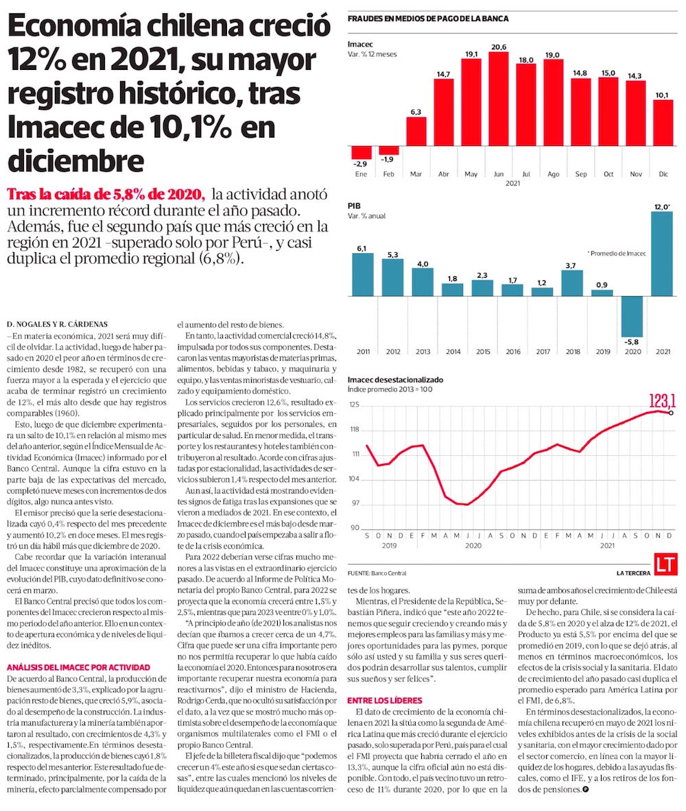En 12% se estima creció la actividad en 2021 y para 2022, pronóstico son entre 1,8% y 4,5% - (El Mercurio de Santiago)