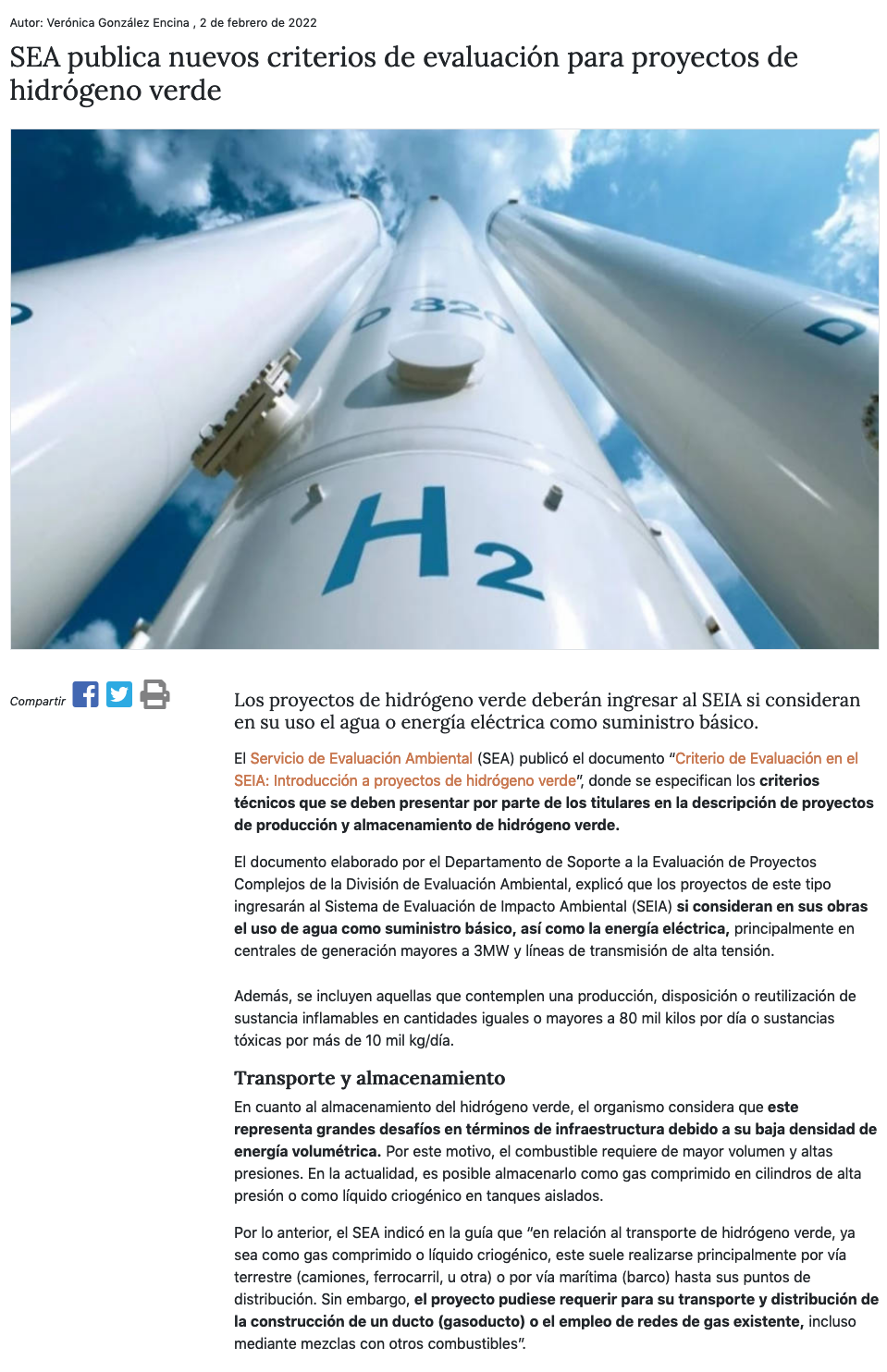 SEA publica criterios técnicos de evaluación para proyectos de hidrógeno verde - (electromov.cl)