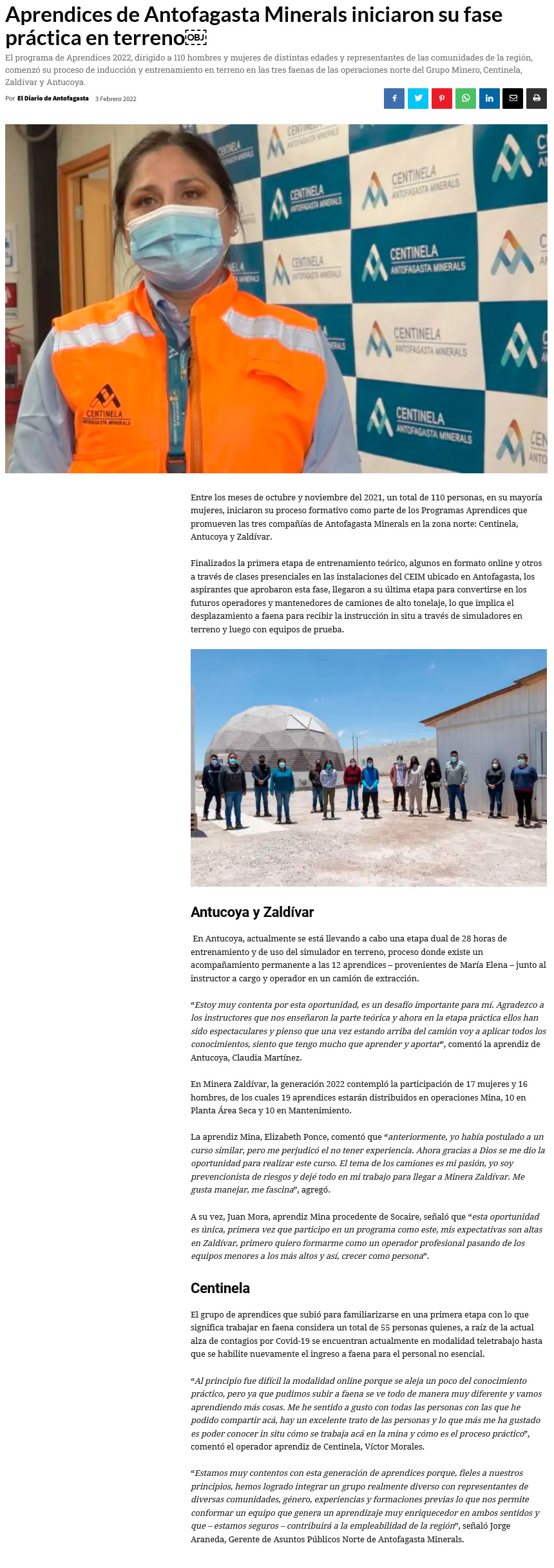 Aprendices iniciaron su práctica en terreno - (Estrella de Antofagasta)