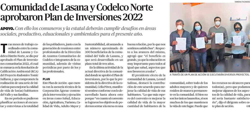 Lasana en conjunto con Codelco Norte aprueban Plan de Inversiones comunitarias 2022 - (elamerica)