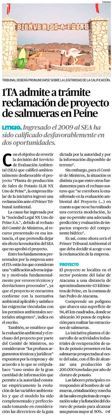 Primer Tribunal ambiental admitió a trámite reclamación que pretende revertir calificación ambiental desfavorable de proyecto de explotación de salmueras - (calamaenlinea.cl)