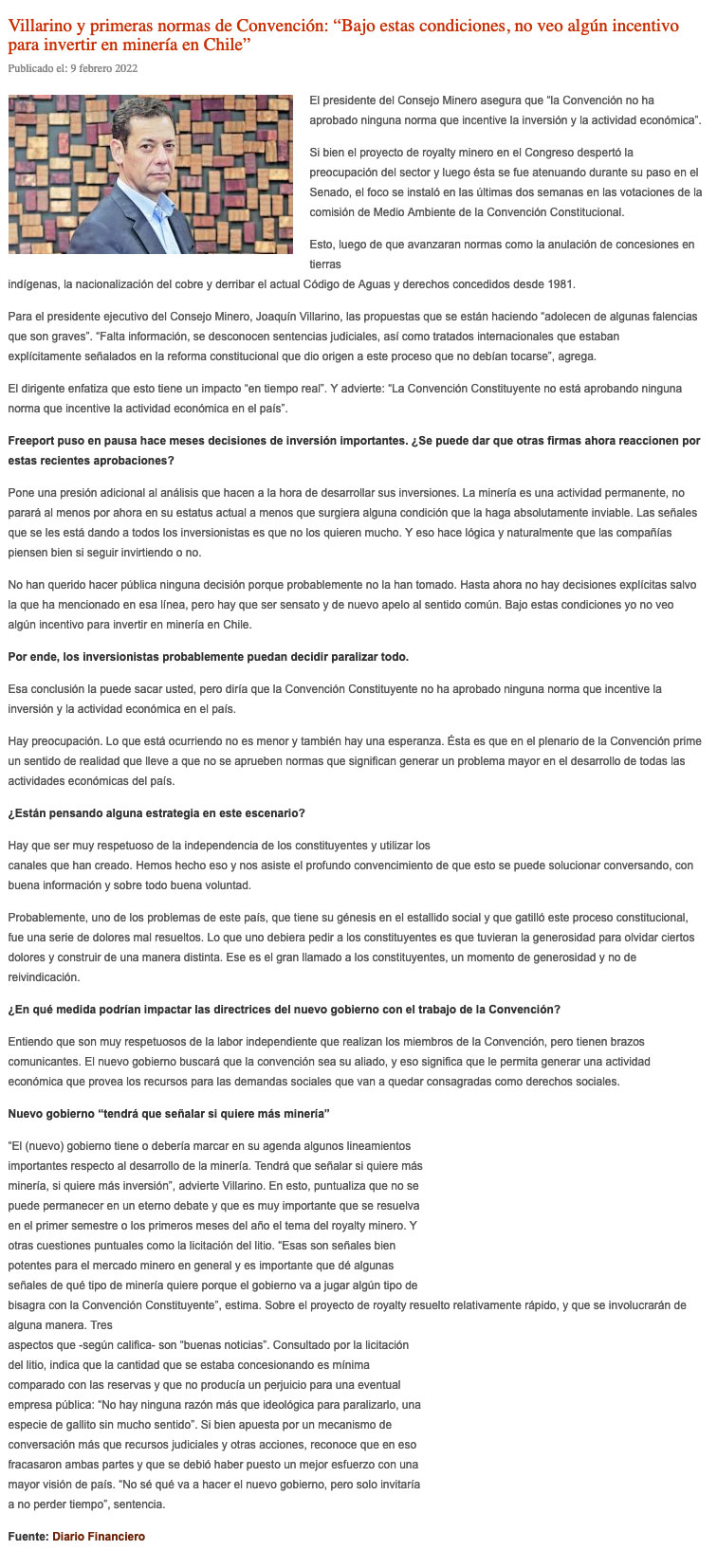 Villarino y primeras normas de Convención: “Bajo estas condiciones, no veo algún incentivo para invertir en minería en Chile” - (redimin)