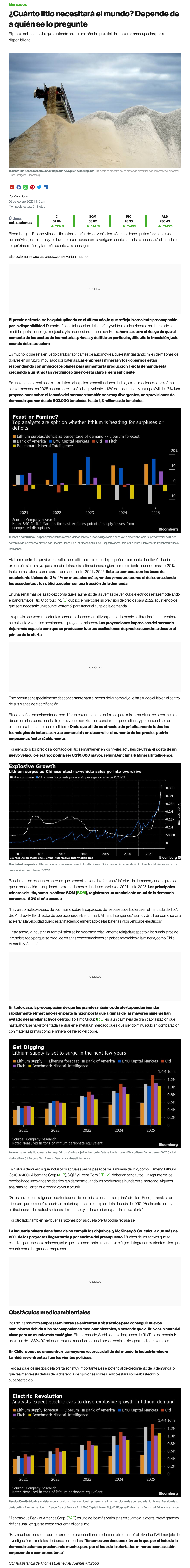 ¿Cuánto litio necesitará el mundo? Depende de a quien le pregunte - (DF Online)