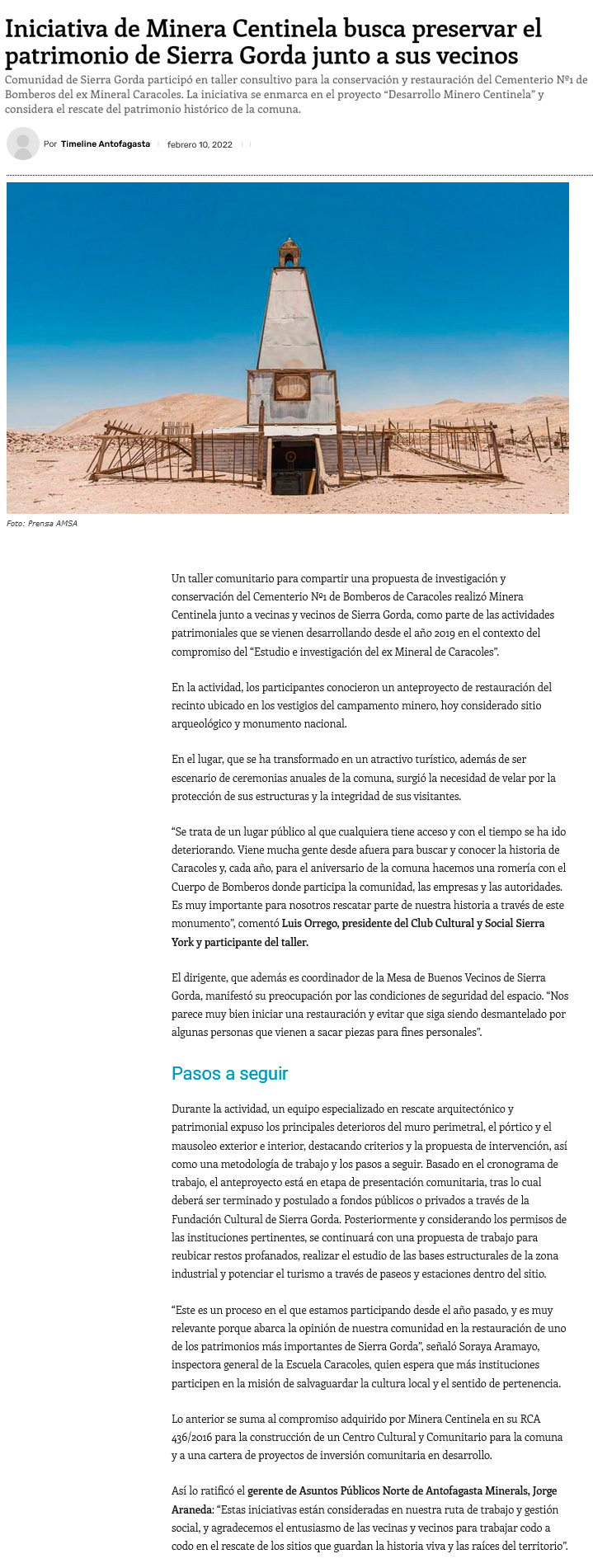Buscan preservar cementerio de exmineral de Caracoles - (El Mercurio de Antofagasta)