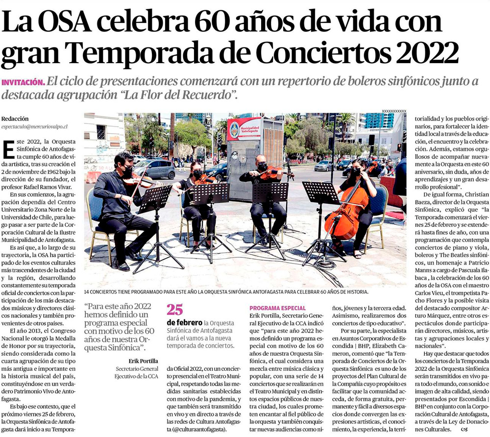 Orquesta Sinfónica de Antofagasta celebra 60 años de vida con gran Temporada de Conciertos 2022 presentada por Escondida | BHP - (timeline)