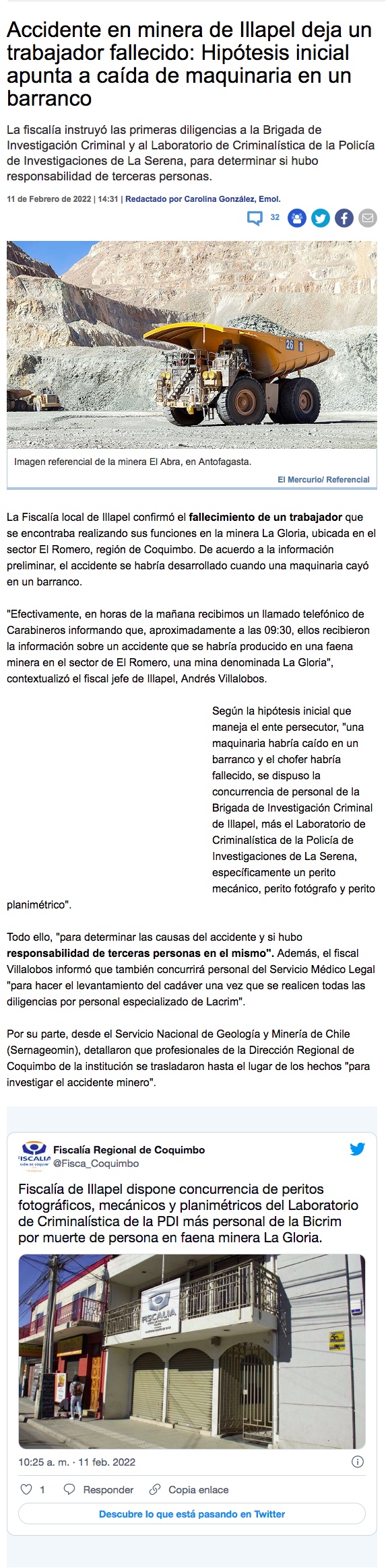 Trabajador minero fallece al desbarrancar 500 metros en la comuna de Illapel - (La Región)