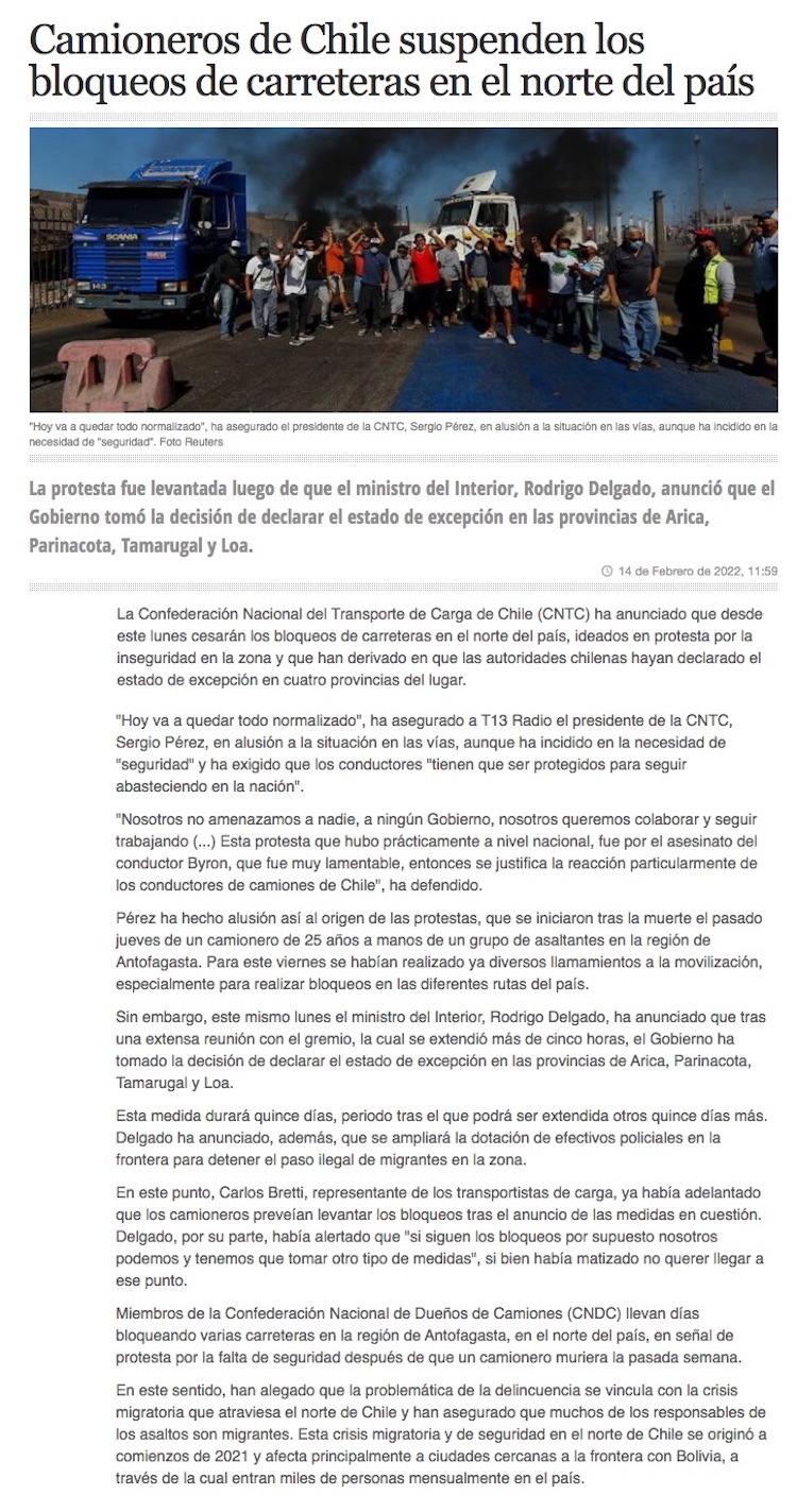 Camioneros dan por terminado paro, pero aseguran que fiscalizarán acuerdos - (Estrella de Iquique)