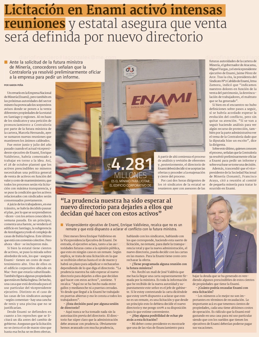 Actas del directorio de Enami reflejan que no existe autorización para venta de activos - (El Mercurio de Santiago)