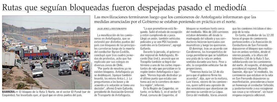 Camioneros dan por terminado paro, pero aseguran que fiscalizarán acuerdos - (Estrella de Iquique)