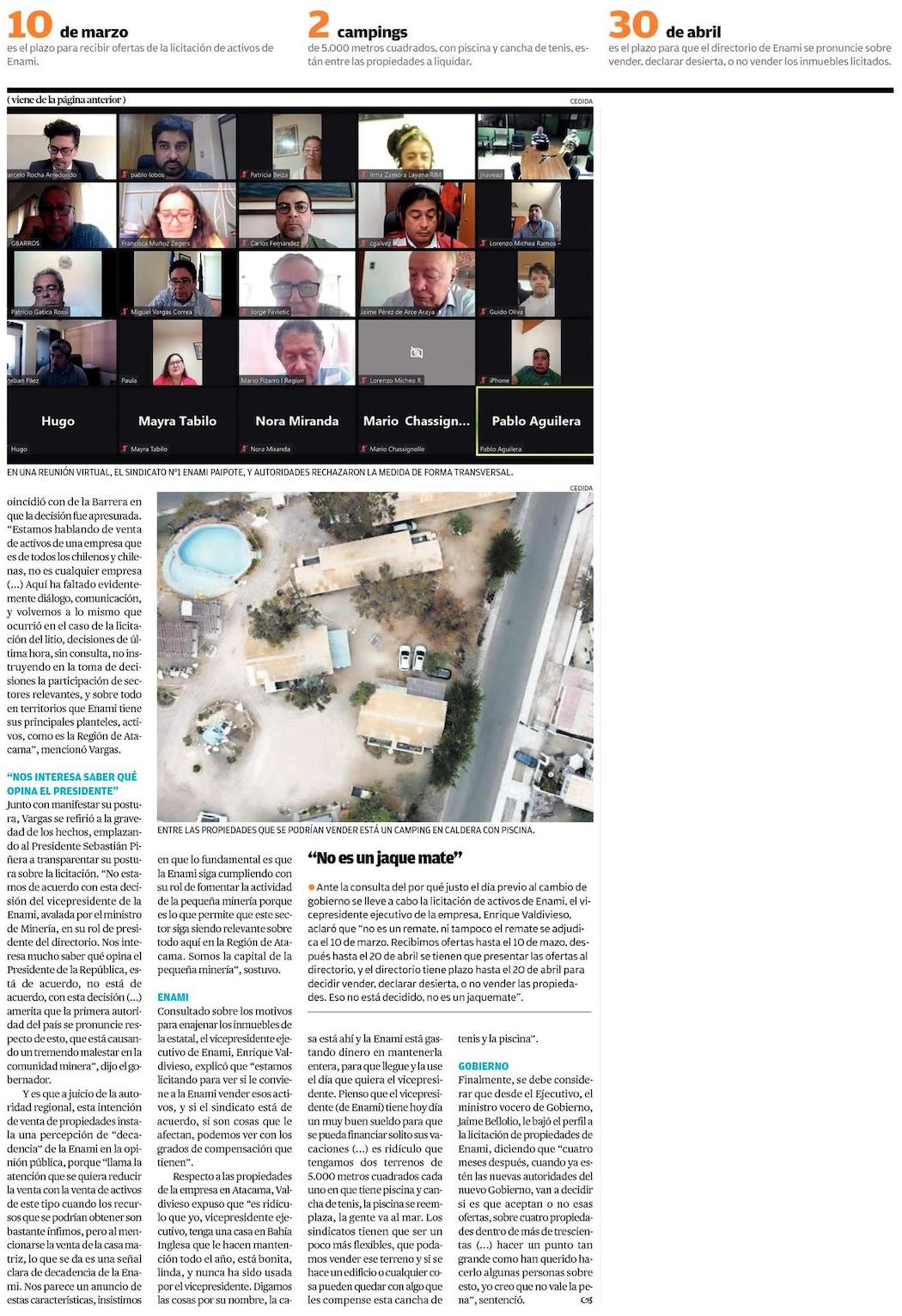 Licitación en Enami activó intensas reuniones y estatal asegura que venta será definida por nuevo directorio - (Diario Financiero)