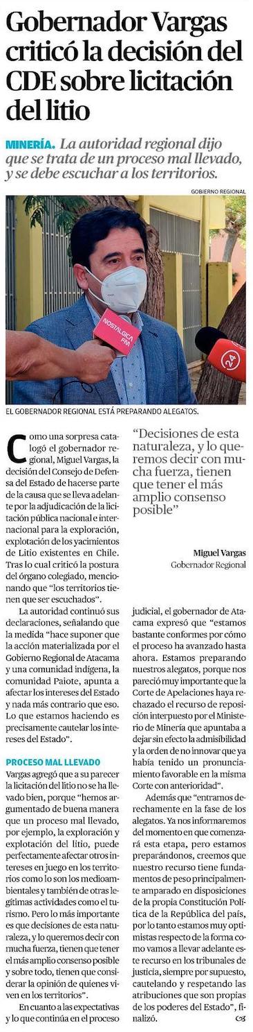 CDE representa al gobierno en causa que suspendió licitación del litio y desata críticas de autoridad de Atacama - (Diario Financiero)