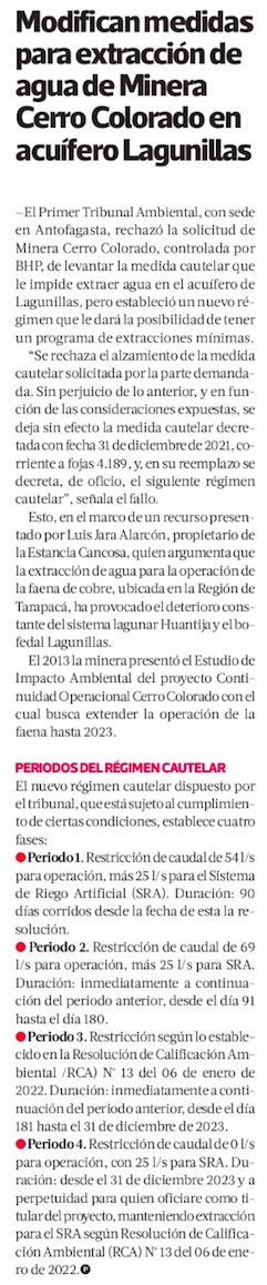 Dictan nueva cautelar que permite a Cerro Colorado extraer agua - (El Mercurio de Santiago)