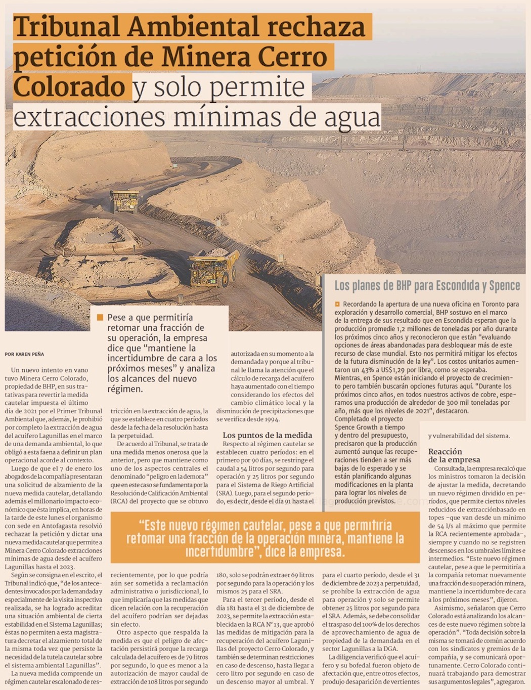 Dictan nueva cautelar que permite a Cerro Colorado extraer agua - (El Mercurio de Santiago)