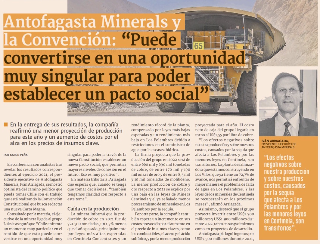 AMSA invertirá hasta 1.900 millones de dólares en sus yacimientos y proyectos durante el 2022 - (El Mercurio de Calama)
