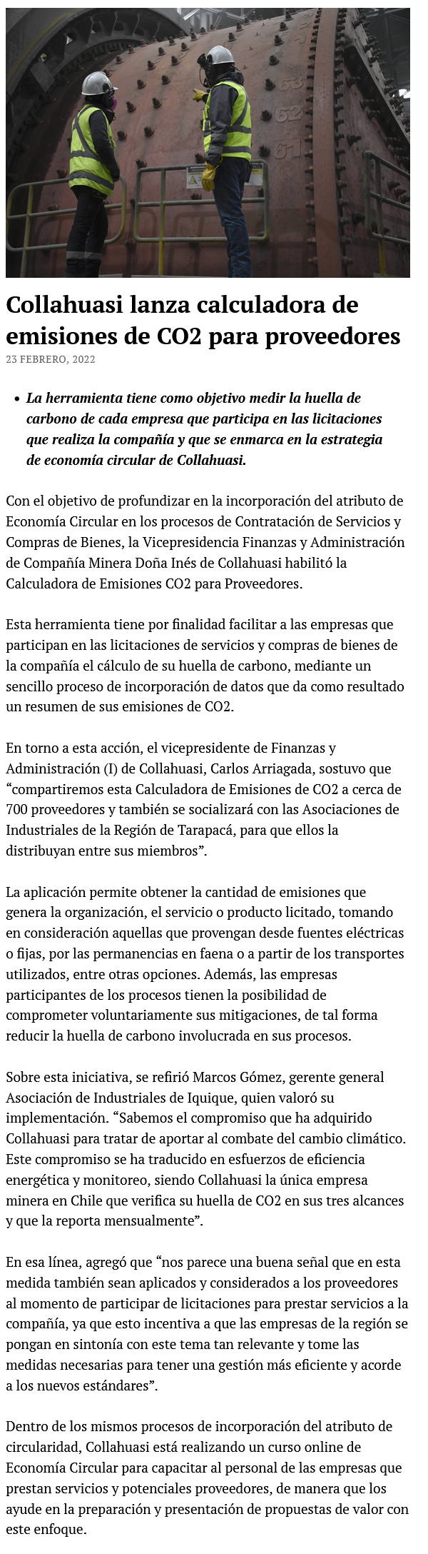 Collahuasi: Así funciona la nueva calculadora de emisiones de CO2 para proveedores - (mch.cl)