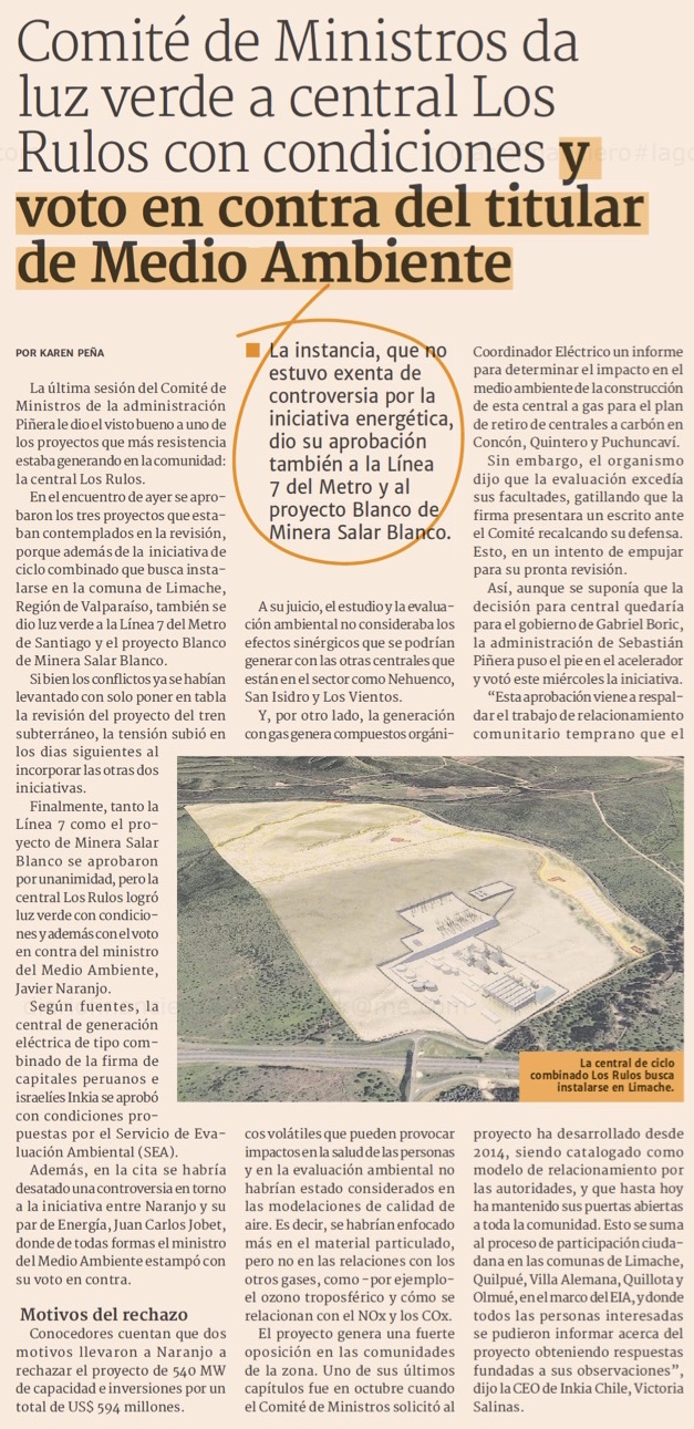 Comité de Ministros da luz verde ambiental a Línea 7 y Central Los Rulos - (La Segunda)