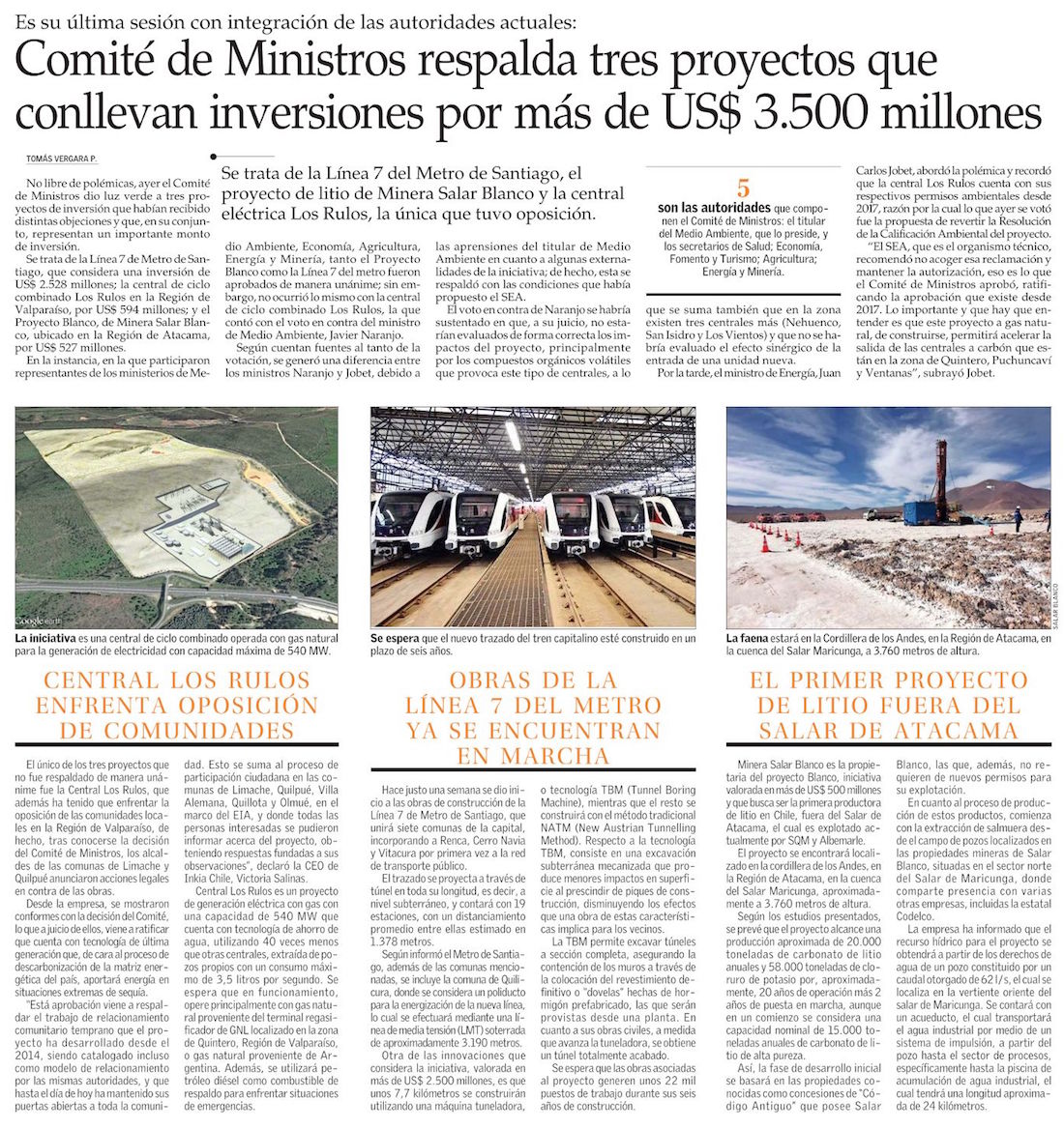 Comité de Ministros da luz verde ambiental a Línea 7 y Central Los Rulos - (La Segunda)