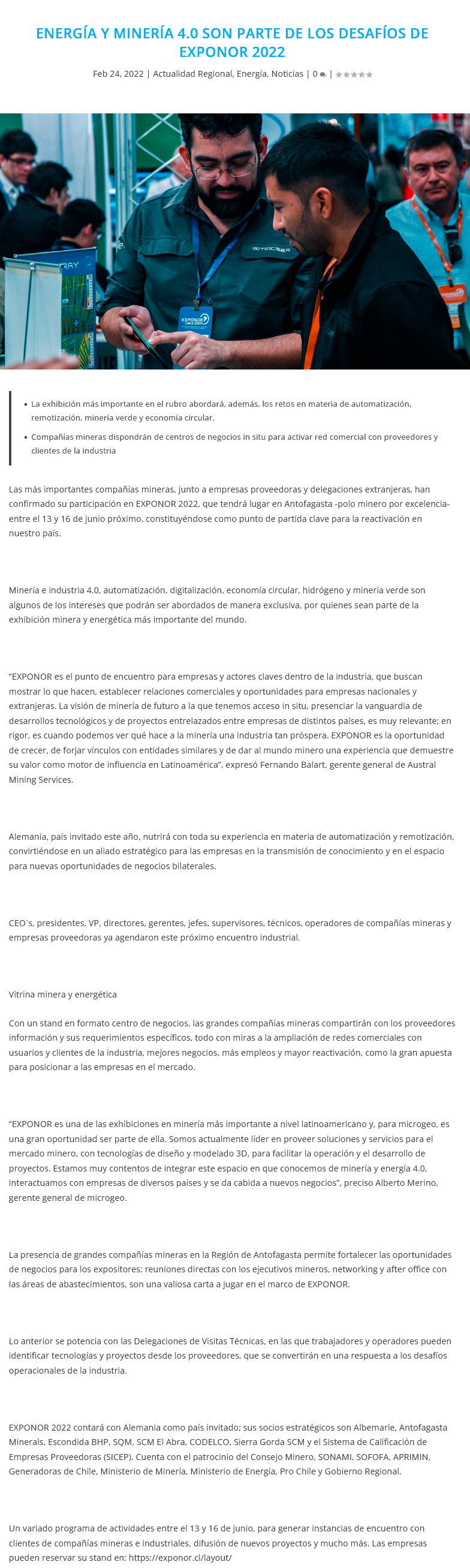 Energía y Minería 4.0 son parte de los desafíos de Exponor 2022 - (madero.cl)