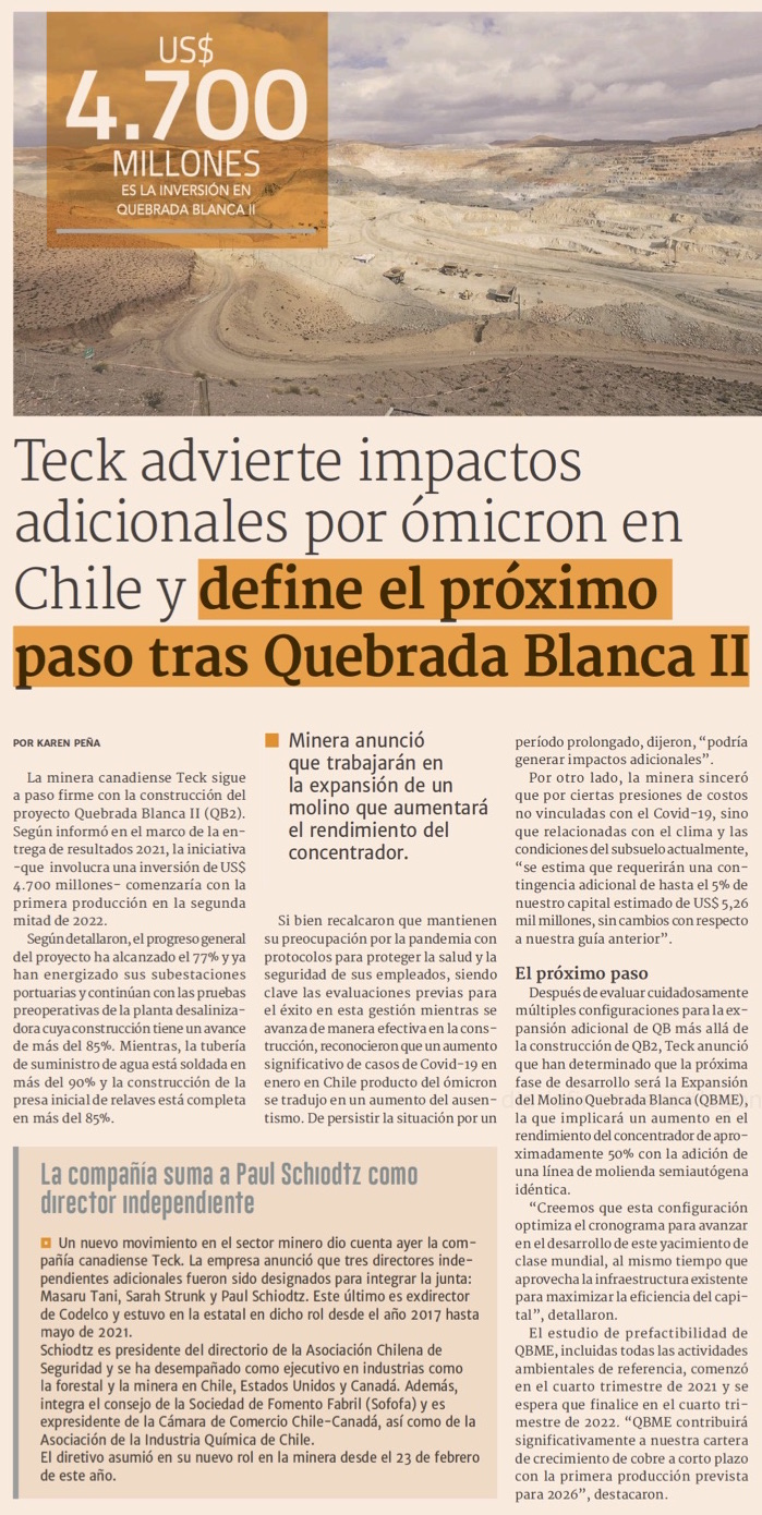 Pese a la pandemia, QB 2 entraría en operación este año - (El Mercurio de Santiago)
