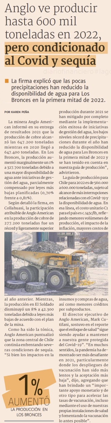 Anglo American advierte por efecto de la sequía y congela inversión por eventual royalty - (El Mercurio de Santiago)