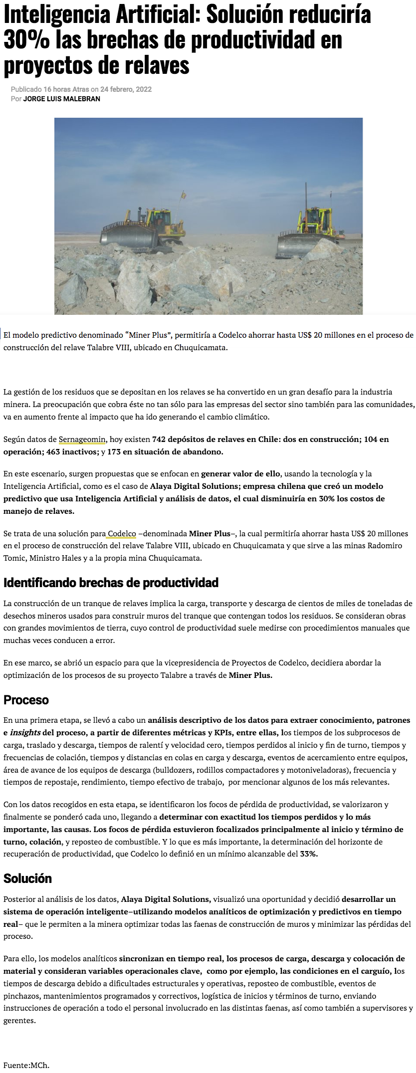 Empresa chilena desarrolla solución que permite aumentar un 30% la productividad en proyectos de relaves - (portalminero)