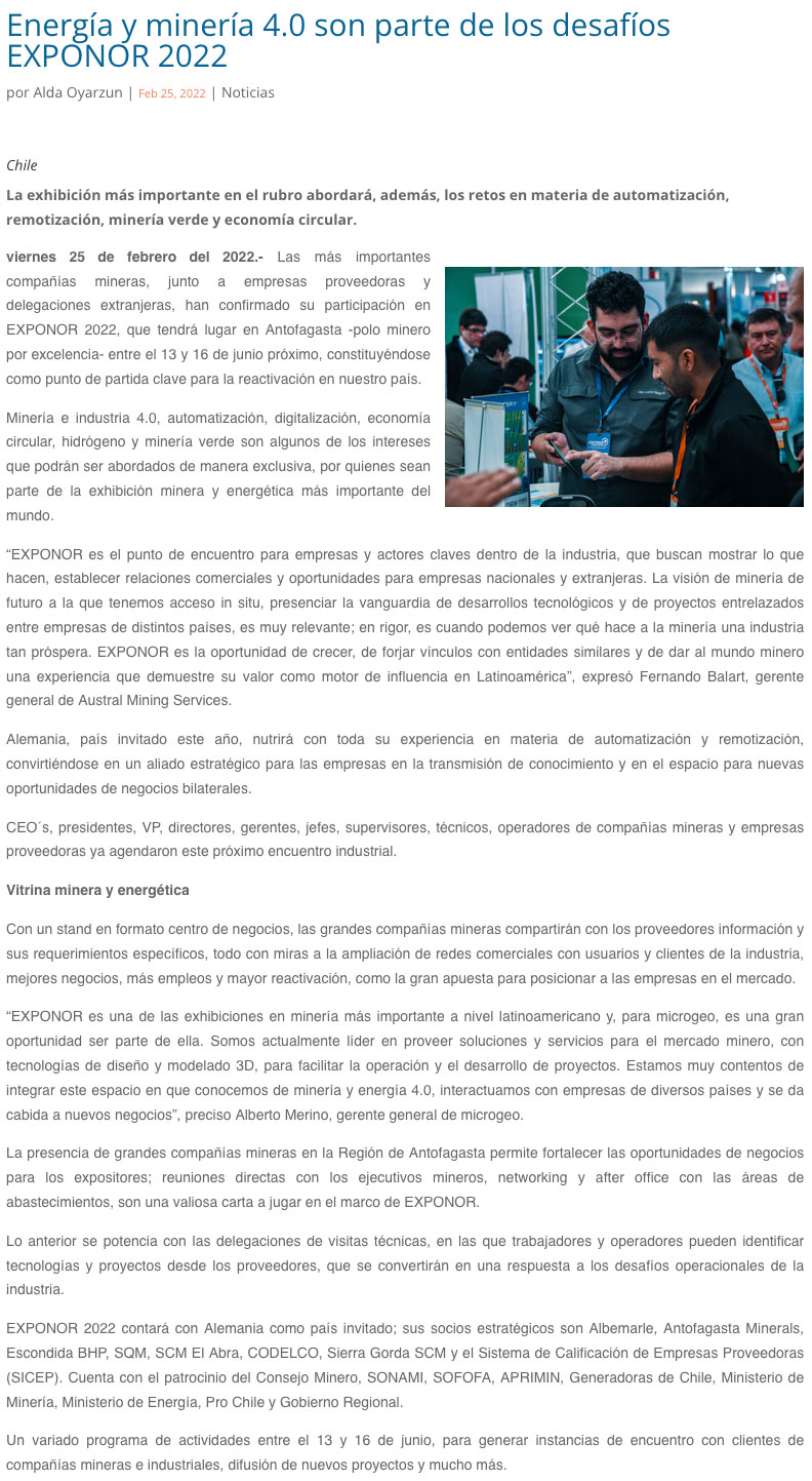 Energía y minería 4.0 son parte de los desafíos EXPONOR 2022 - (Nostálgica Online)