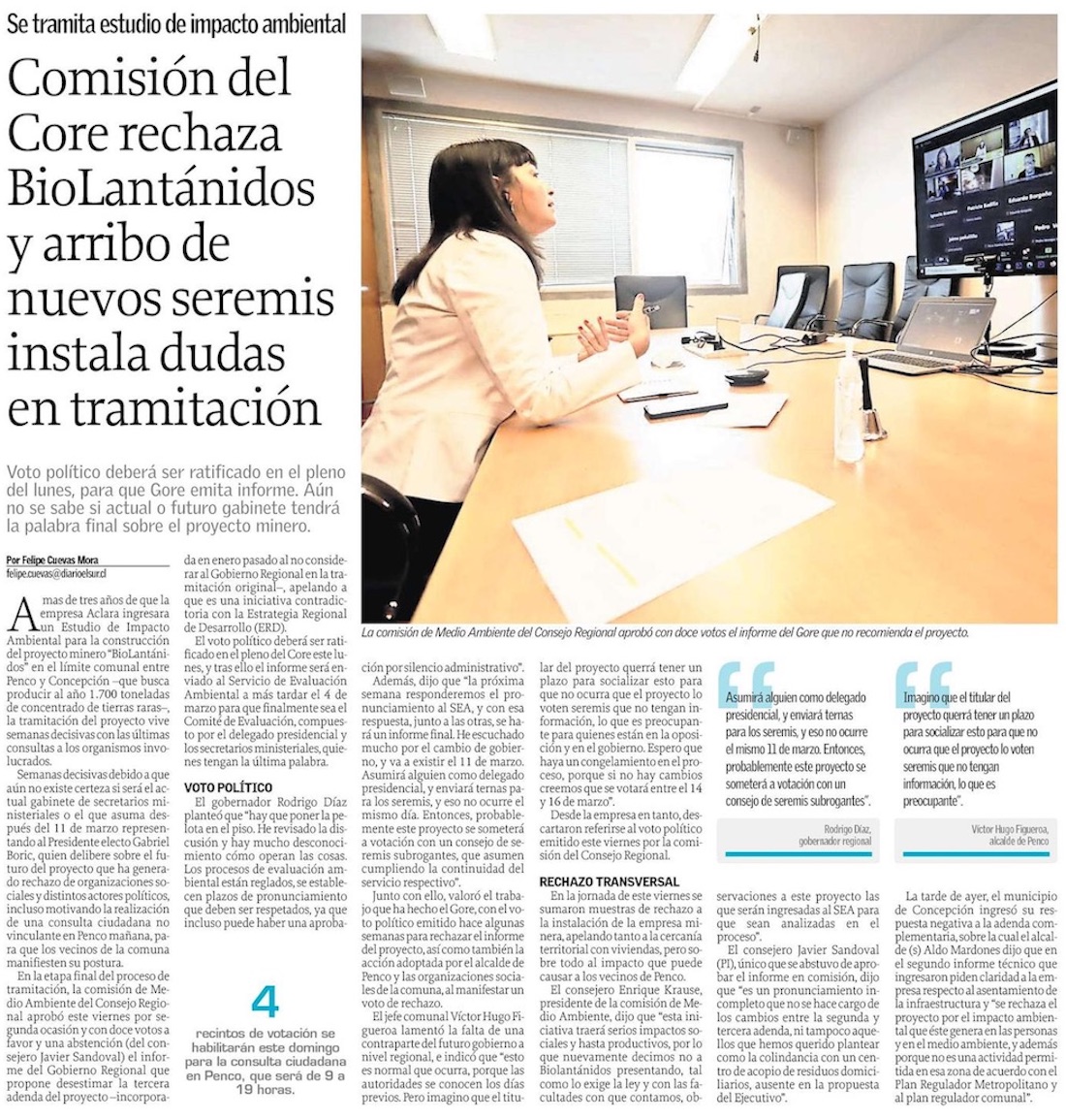Consejo Regional se pronuncia por nueva adenda de Aclara - (Diario Concepción)