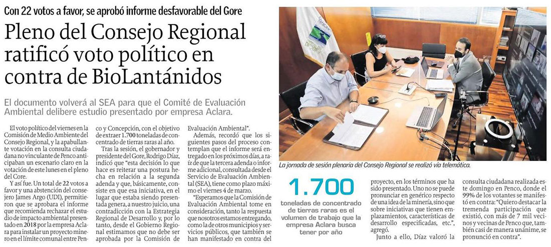 Consulta ciudadana rechaza proyecto de tierras raras en Penco: empresa denuncia irregularidades - (biobiochile online)