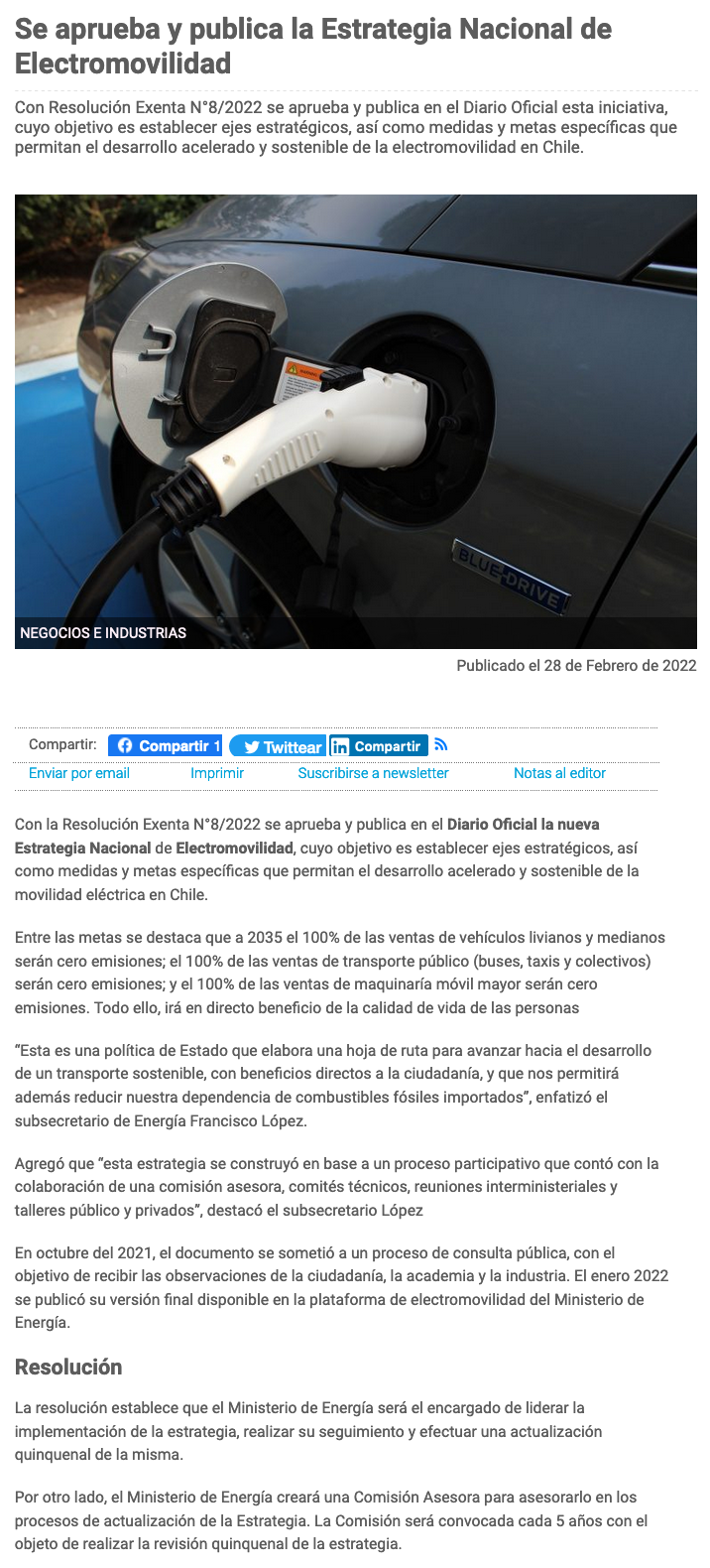Se aprueba y publica la Estrategia Nacional de Electromovilidad - (El Diario de Atacama)