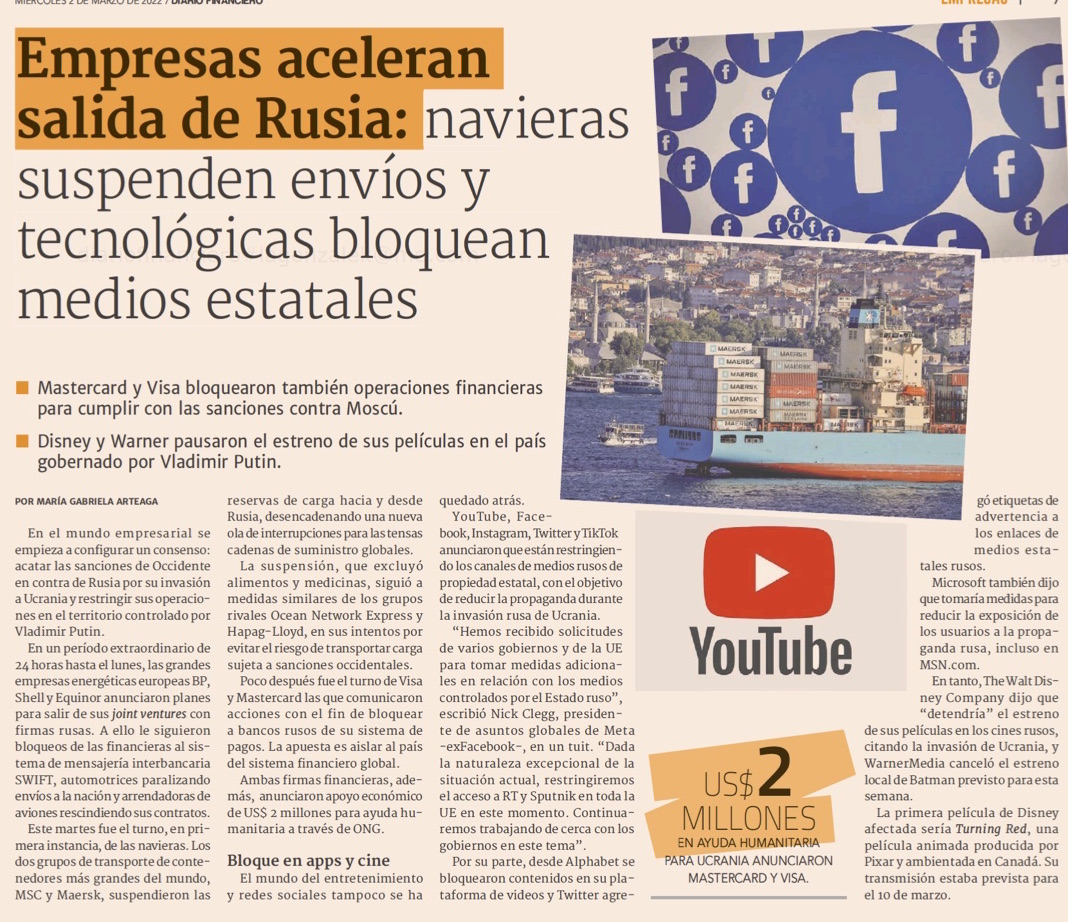 Las empresas occidentales se retiran de Rusia - (El Mercurio de Santiago)