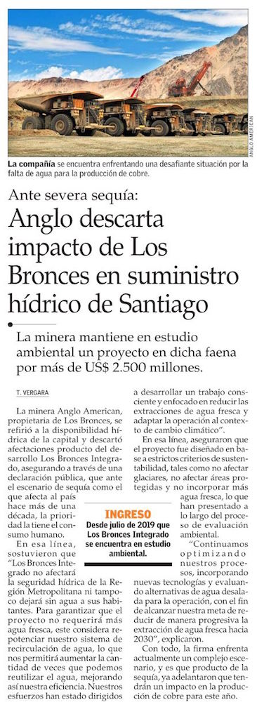 Anglo American precisa por qué “Los Bronces Integrado no afectará la seguridad hídrica de la RM” - (mch.cl)