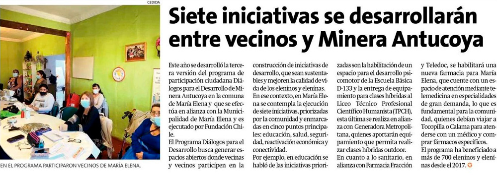 Antucoya desarrolla siete iniciativas junto a la comunidad de María Elena - (cualestuhuella.cl)