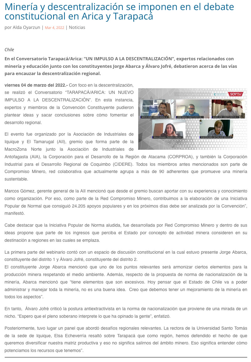Seminario Tarapacá/Arica: Minería y descentralización en la discusión constitucional - (ceinoticias.cl)
